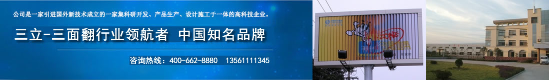 三立廣告設(shè)備有限公司是一家以及開發(fā)、設(shè)計、生產(chǎn)三面翻廣告牌和戶外廣告設(shè)備的生產(chǎn)企業(yè)。 目前公司擁有一套完善的現(xiàn)代化企業(yè)管理制度和獨具特色的企業(yè)文化機制,在倡導(dǎo)人性化管理,"以人為本"的經(jīng)營管理模式下,公司日益壯大,產(chǎn)品質(zhì)量不斷提升。